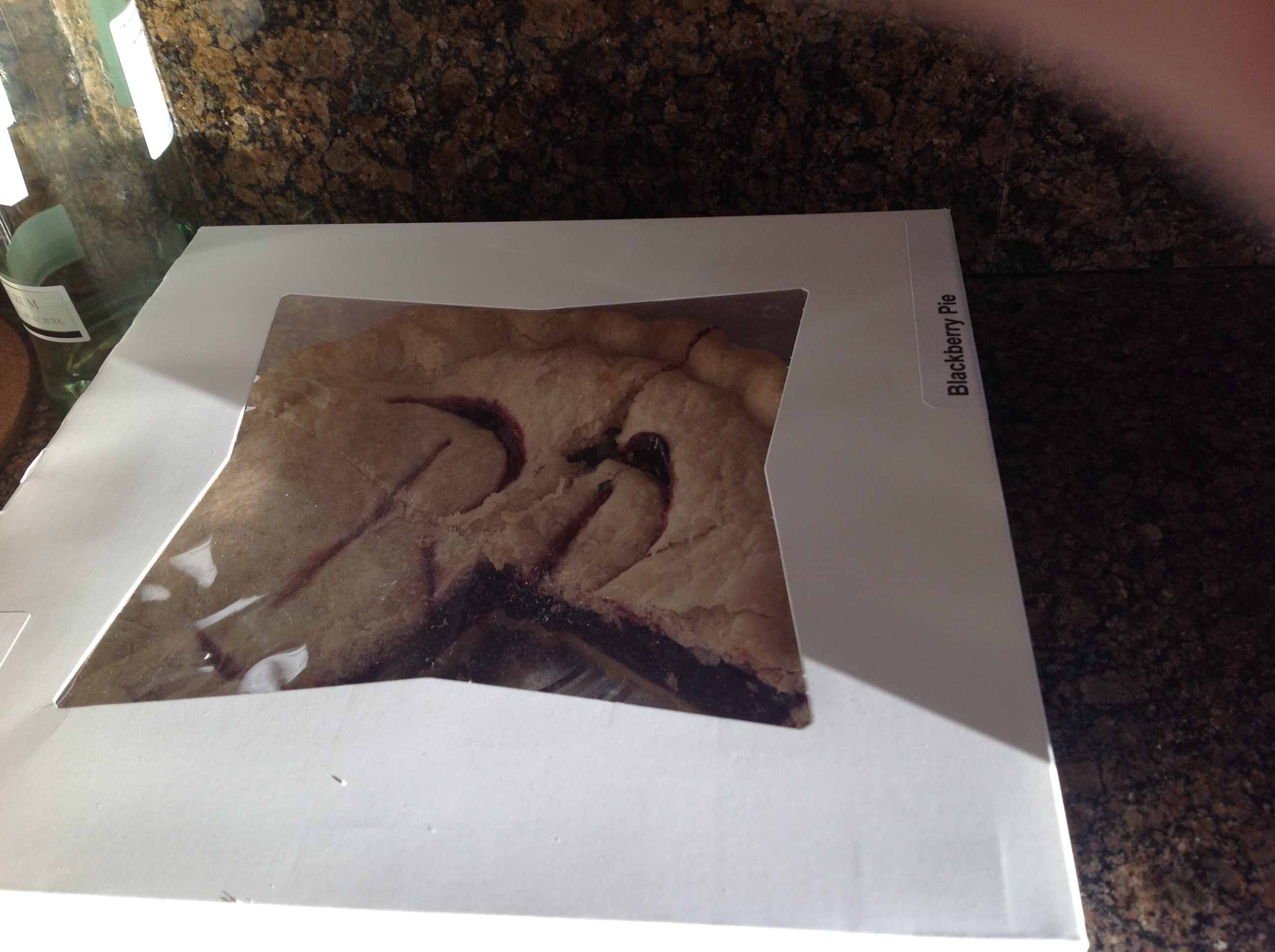 On Saturday morning my sweet wife went to get me coffee and when she came back she asked if I had a lot of writing or re-writes to do this weekend. I told her no that I’d already finished my re-writes. My wife has been very supportive and patient with me, especially since we only see each other on the weekends and oftentimes I get distracted with a story idea or have work to do on re-writes. She was thrilled to learn that we could have a nice date and asked if I wanted to do a picnic lunch. I readily agreed. We had some chicken and potato salad to dig into. She dropped me off at work to do my rounds and then went to the farmer’s market to pick up a few items, including this wonderful pie from Rhonda’s pies. We always have to have something we call a sweety treat from the farmer’s market Sometimes it’s caramel popcorn made from locally grown corn and when that’s not available, we get a pie.