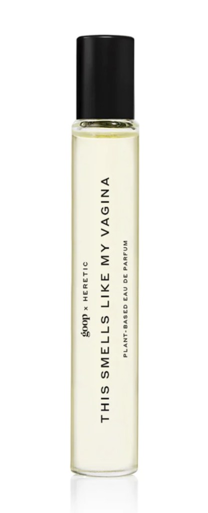 - From Heretic Parfum: This smells like my vagina perfume rollerball, Heretic X Goop: Energizing Bergamot blends with Cedar and Rose in this infamous Goop collaboration, This Smells Like My Vagina perfume for a sultry and sophisticated scent that stimulates sensuality and self-love. Natural ingredients plus safe synthetics. 10mL rollerball. They also make a candle that, yup, you guessed it, smells like a vagina!