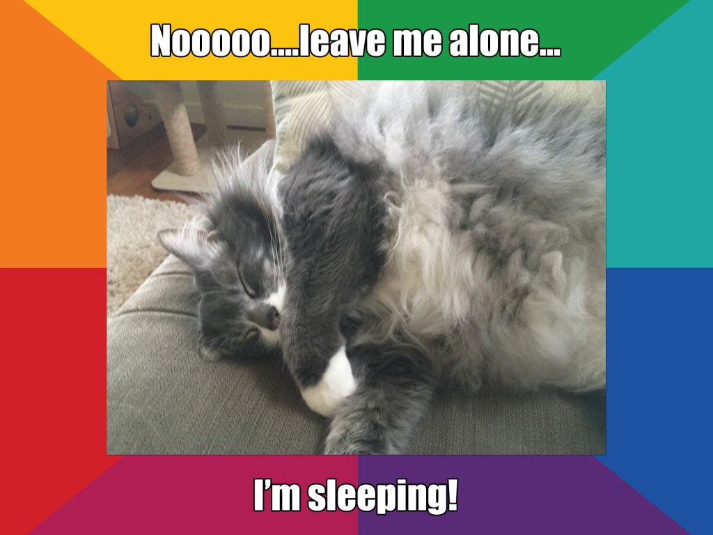 Sometimes in my semi-conscious state, I also figure out how to plug those pesky plot holes and also receive brilliance about a new plot twist. When the stories are as complicated as I sometimes make them, I can almost feel the hand on my ass pushing me out of bed and to my computer before once again I forget the brilliance. The bottom line is that it sure is convenient I’m retired because I am definitely not getting proper sleep. I’ve always had a bit of insomnia, but this is a whole new level of chaos. Thank goodness for naps.