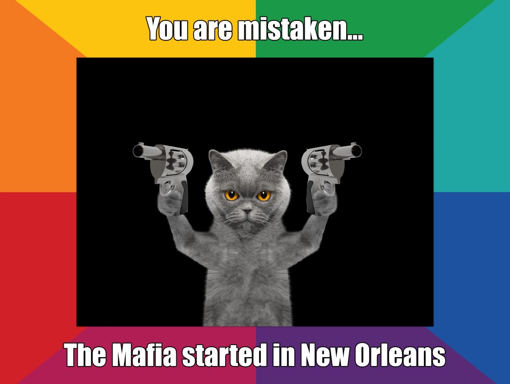 - Many historians believe New Orleans, not Chicago or New York, was the birthplace of the Italian Mafia. New Orleans received the largest number of Italian immigrants from Sicily after the large exodus because Sicilians wanted their own nation after merging and becoming unified in 1861. The first Mafia war occurred in 1869 after a very bloody affair with a whole lot of people getting “whacked”. The original Godfather was killed on April 1st by a very nasty rival who had established a political group called the Innocenti with ties to many New Orleans residents. Unfortunately, the New Orleans residents grew tired of their new neighbors and hired a new police chief to clean things up. When he was shot and killed, a mob formed. A large number of Italians (over 250), many innocent, were rounded up, and nineteen were charged. None received a guilty verdict, so the mob took it upon themselves to take the law into their own hands and hung eleven of them. Eight managed to escape. As is often the horror of human nature, this was entertainment for the residents of New Orleans. And that is why the Italian sandwich Muffaletta is so popular in New Orleans. Invented in the early 1900s to cater to the Italian immigrants.